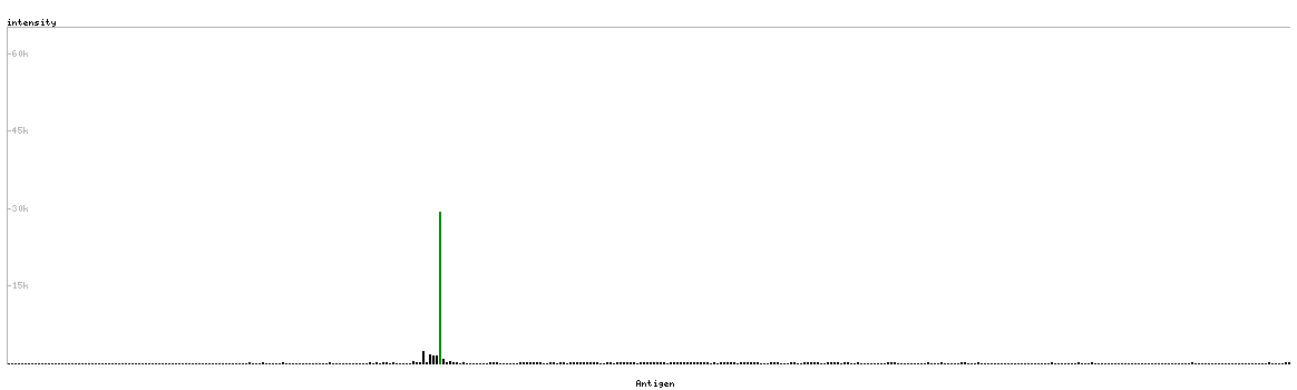 The curve in blue displays the predicted antigenicity i.e. the tendency for different regions of the protein to generate an immune response, with peak regions being predicted to be more antigenic.The curve shows average values based on a sliding window approach using an in-house propensity scale. (read more).