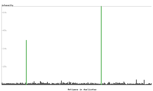 Below the antigens, the maximum percent sequence identity of the protein to all other proteins from other human genes is displayed, using a sliding window of 10 aa residues (HsID 10) or 50 aa residues (HsID 50). The region with the lowest possible identity is always selected for antigen design, with a maximum identity of 60% allowed for designing a single-target antigen (read more).