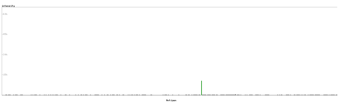At the top of the view, the position of the antigen (identified by the corresponding HPA identifier) is shown as a green bar. A yellow triangle on the bar indicates a <100% sequence identity to the protein target.