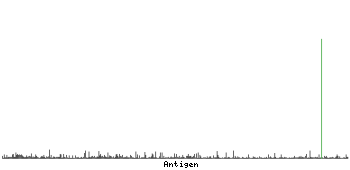 At the top of the view, the position of the antigen (identified by the corresponding HPA identifier) is shown as a green bar. A yellow triangle on the bar indicates a <100% sequence identity to the protein target.