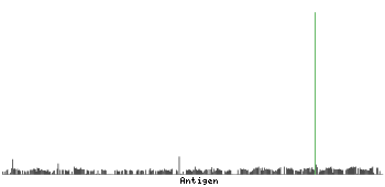 At the top of the view, the position of the antigen (identified by the corresponding HPA identifier) is shown as a green bar. A yellow triangle on the bar indicates a <100% sequence identity to the protein target.