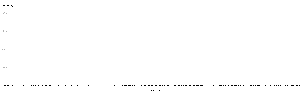 The curve in blue displays the predicted antigenicity i.e. the tendency for different regions of the protein to generate an immune response, with peak regions being predicted to be more antigenic.The curve shows average values based on a sliding window approach using an in-house propensity scale. (read more).
