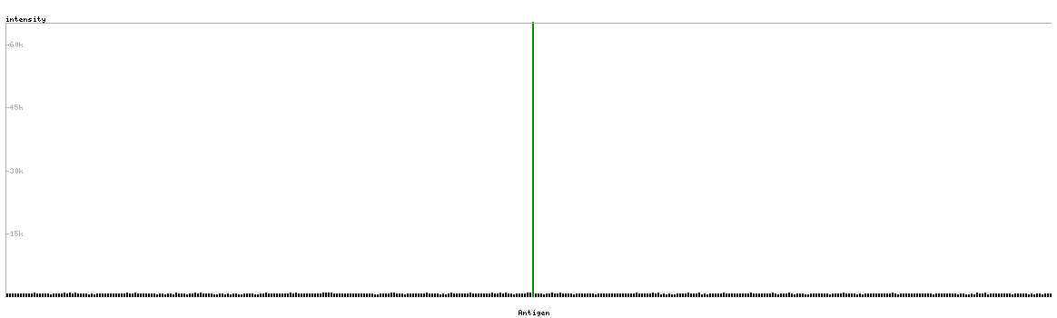 The curve in blue displays the predicted antigenicity i.e. the tendency for different regions of the protein to generate an immune response, with peak regions being predicted to be more antigenic.The curve shows average values based on a sliding window approach using an in-house propensity scale. (read more).