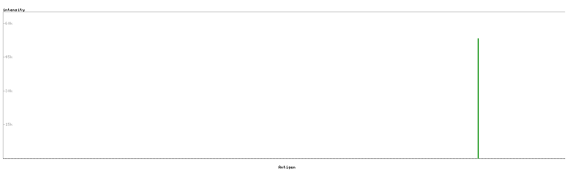 At the top of the view, the position of the antigen (identified by the corresponding HPA identifier) is shown as a green bar. A yellow triangle on the bar indicates a <100% sequence identity to the protein target.