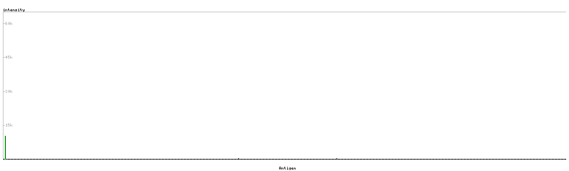 At the top of the view, the position of the antigen (identified by the corresponding HPA identifier) is shown as a green bar. A yellow triangle on the bar indicates a <100% sequence identity to the protein target.
