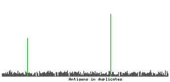 At the top of the view, the position of the antigen (identified by the corresponding HPA identifier) is shown as a green bar. A yellow triangle on the bar indicates a <100% sequence identity to the protein target.