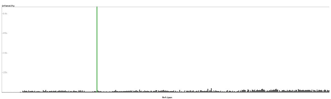 The curve in blue displays the predicted antigenicity i.e. the tendency for different regions of the protein to generate an immune response, with peak regions being predicted to be more antigenic.The curve shows average values based on a sliding window approach using an in-house propensity scale. (read more).