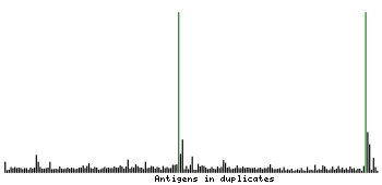 At the top of the view, the position of the antigen (identified by the corresponding HPA identifier) is shown as a green bar. A yellow triangle on the bar indicates a <100% sequence identity to the protein target.