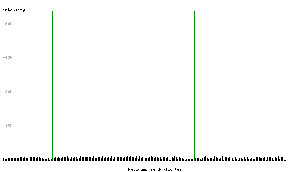 Below the antigens, the maximum percent sequence identity of the protein to all other proteins from other human genes is displayed, using a sliding window of 10 aa residues (HsID 10) or 50 aa residues (HsID 50). The region with the lowest possible identity is always selected for antigen design, with a maximum identity of 60% allowed for designing a single-target antigen (read more).