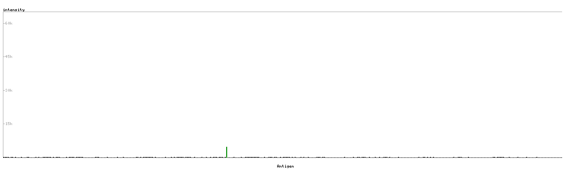 At the top of the view, the position of the antigen (identified by the corresponding HPA identifier) is shown as a green bar. A yellow triangle on the bar indicates a <100% sequence identity to the protein target.