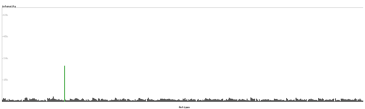 The curve in blue displays the predicted antigenicity i.e. the tendency for different regions of the protein to generate an immune response, with peak regions being predicted to be more antigenic.The curve shows average values based on a sliding window approach using an in-house propensity scale. (read more).