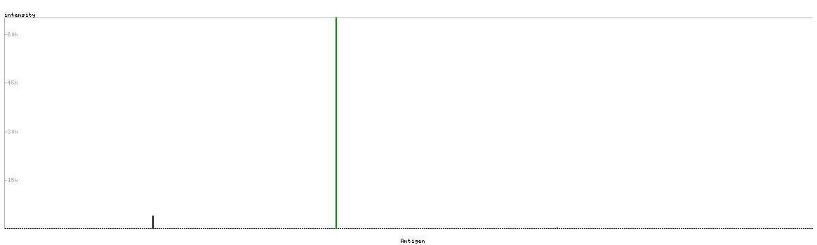 At the top of the view, the position of the antigen (identified by the corresponding HPA identifier) is shown as a green bar. A yellow triangle on the bar indicates a <100% sequence identity to the protein target.