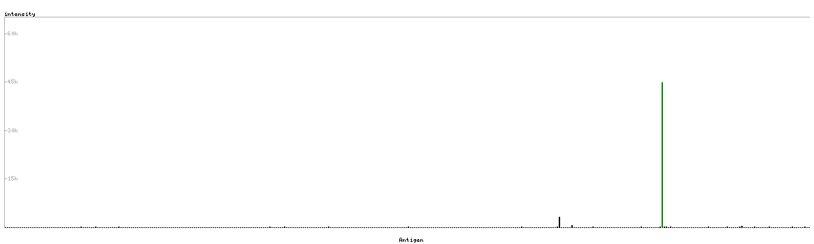 The curve in blue displays the predicted antigenicity i.e. the tendency for different regions of the protein to generate an immune response, with peak regions being predicted to be more antigenic.The curve shows average values based on a sliding window approach using an in-house propensity scale. (read more).