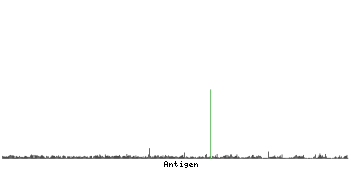 At the top of the view, the position of the antigen (identified by the corresponding HPA identifier) is shown as a green bar. A yellow triangle on the bar indicates a <100% sequence identity to the protein target.