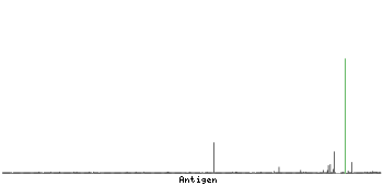 At the top of the view, the position of the antigen (identified by the corresponding HPA identifier) is shown as a green bar. A yellow triangle on the bar indicates a <100% sequence identity to the protein target.