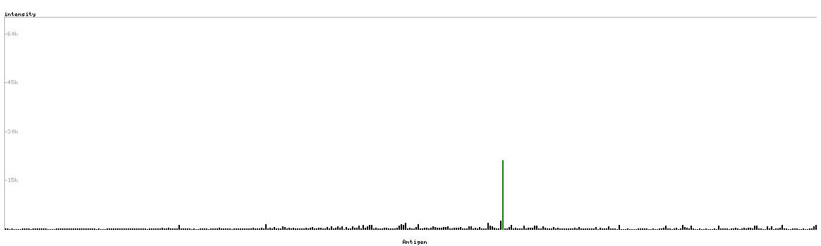 The curve in blue displays the predicted antigenicity i.e. the tendency for different regions of the protein to generate an immune response, with peak regions being predicted to be more antigenic.The curve shows average values based on a sliding window approach using an in-house propensity scale. (read more).
