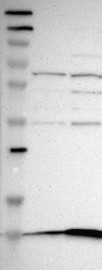 A Western blot analysis is performed on a panel of human tissues and cell lines to evaluate antibody specificity. For antibodies with unreliable result a revalidation using an over-expression lysate is performed.