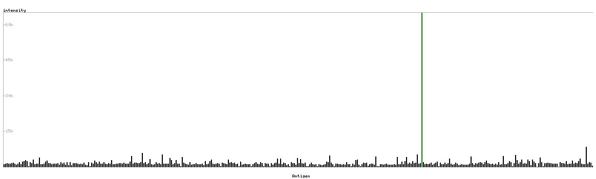 The curve in blue displays the predicted antigenicity i.e. the tendency for different regions of the protein to generate an immune response, with peak regions being predicted to be more antigenic.The curve shows average values based on a sliding window approach using an in-house propensity scale. (read more).