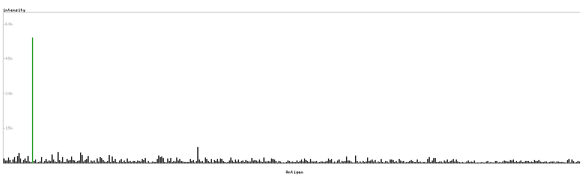 The curve in blue displays the predicted antigenicity i.e. the tendency for different regions of the protein to generate an immune response, with peak regions being predicted to be more antigenic.The curve shows average values based on a sliding window approach using an in-house propensity scale. (read more).
