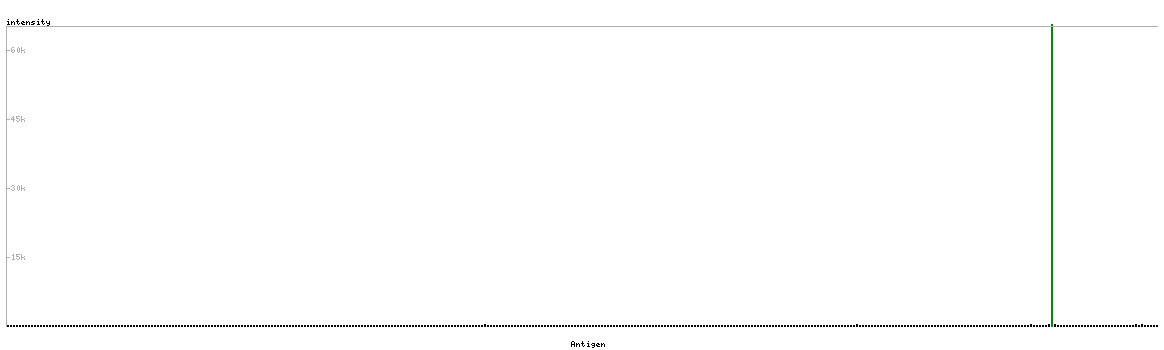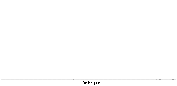 At the top of the view, the position of the antigen (identified by the corresponding HPA identifier) is shown as a green bar. A yellow triangle on the bar indicates a <100% sequence identity to the protein target.