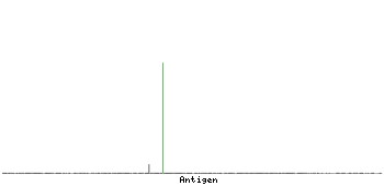 At the top of the view, the position of the antigen (identified by the corresponding HPA identifier) is shown as a green bar. A yellow triangle on the bar indicates a <100% sequence identity to the protein target.