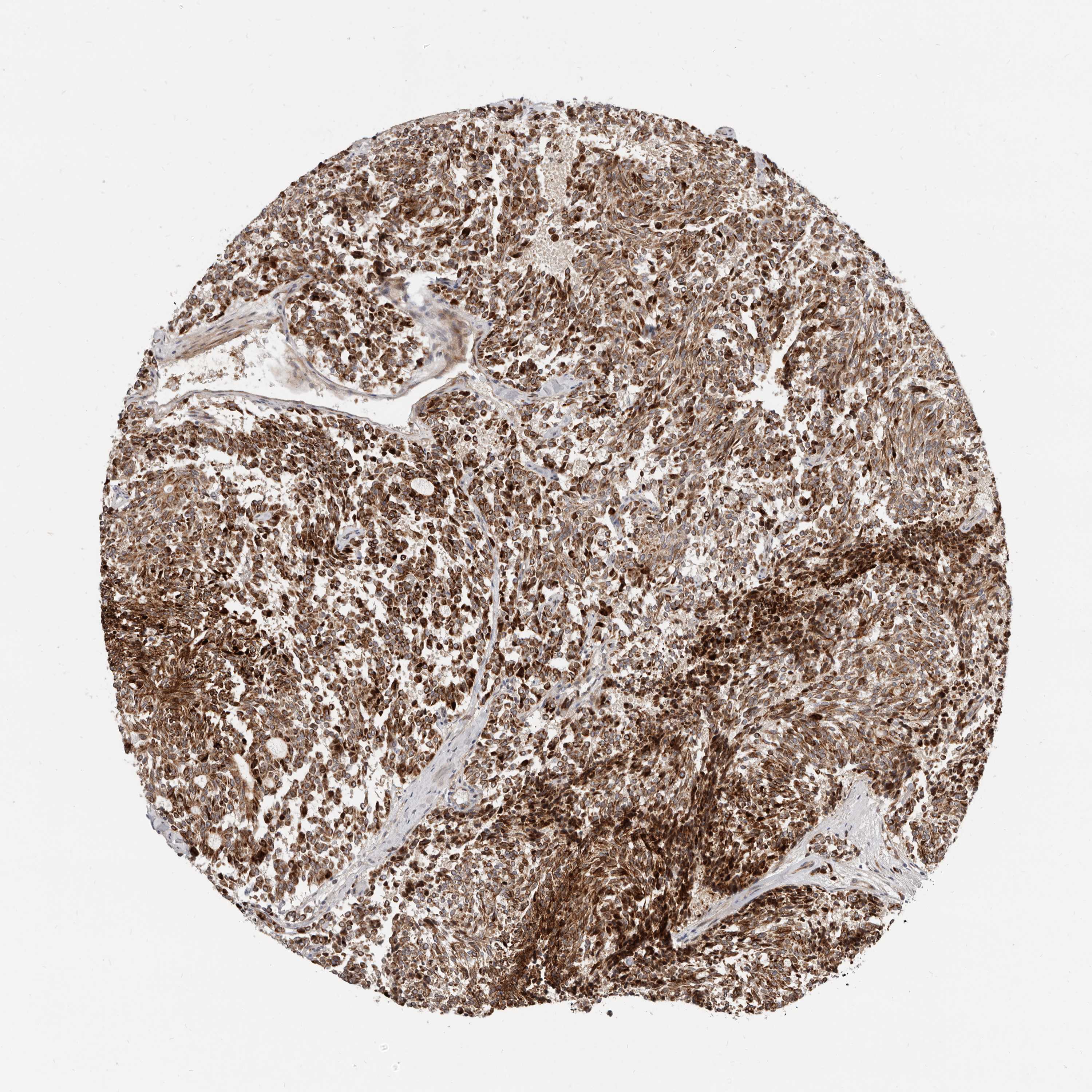 A mouse-over function shows sample information and annotation data. Click on an image to view it in a full screen mode. Samples can be filtered based on level of antibody staining by selecting one or several of the following categories: high, medium, low and not detected. The assay and annotation is described here. Note that samples used for immunohistochemistry by the Human Protein Atlas do not correspond to samples in the TCGA dataset.