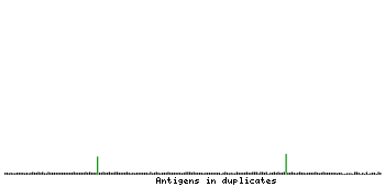 At the top of the view, the position of the antigen (identified by the corresponding HPA identifier) is shown as a green bar. A yellow triangle on the bar indicates a <100% sequence identity to the protein target.
