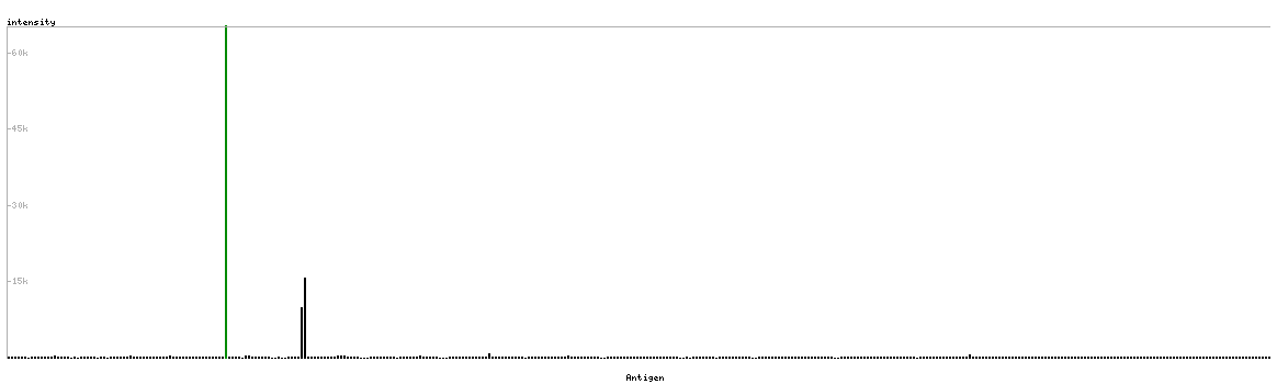 The curve in blue displays the predicted antigenicity i.e. the tendency for different regions of the protein to generate an immune response, with peak regions being predicted to be more antigenic.The curve shows average values based on a sliding window approach using an in-house propensity scale. (read more).