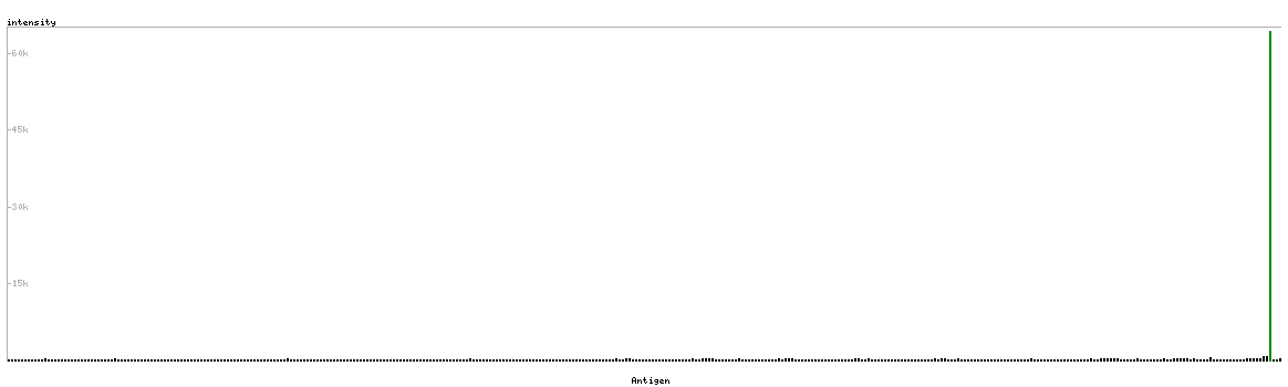 The curve in blue displays the predicted antigenicity i.e. the tendency for different regions of the protein to generate an immune response, with peak regions being predicted to be more antigenic.The curve shows average values based on a sliding window approach using an in-house propensity scale. (read more).