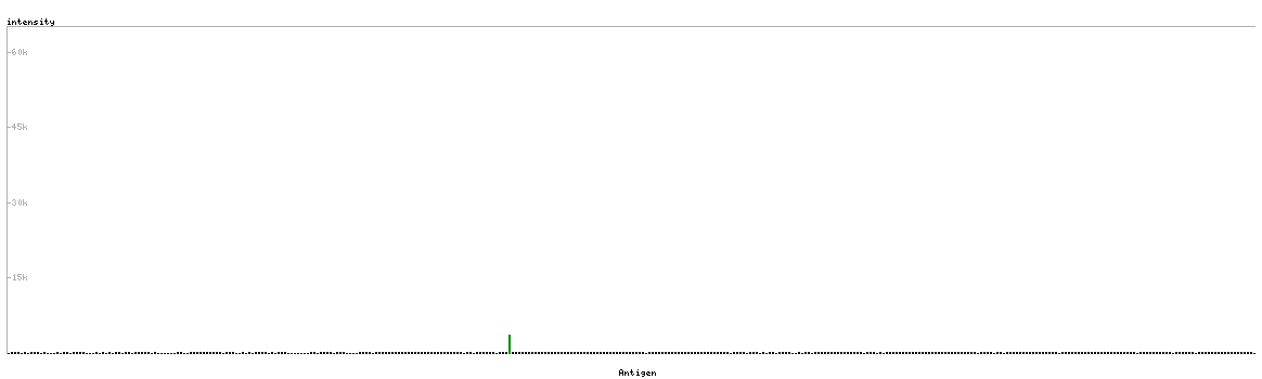 At the top of the view, the position of the antigen (identified by the corresponding HPA identifier) is shown as a green bar. A yellow triangle on the bar indicates a <100% sequence identity to the protein target.