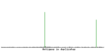 At the top of the view, the position of the antigen (identified by the corresponding HPA identifier) is shown as a green bar. A yellow triangle on the bar indicates a <100% sequence identity to the protein target.