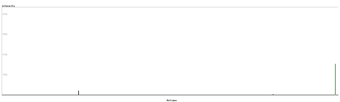 At the top of the view, the position of the antigen (identified by the corresponding HPA identifier) is shown as a green bar. A yellow triangle on the bar indicates a <100% sequence identity to the protein target.