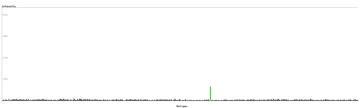 At the top of the view, the position of the antigen (identified by the corresponding HPA identifier) is shown as a green bar. A yellow triangle on the bar indicates a <100% sequence identity to the protein target.
