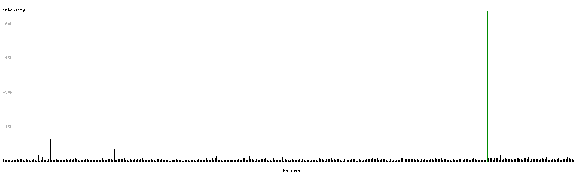 The curve in blue displays the predicted antigenicity i.e. the tendency for different regions of the protein to generate an immune response, with peak regions being predicted to be more antigenic.The curve shows average values based on a sliding window approach using an in-house propensity scale. (read more).