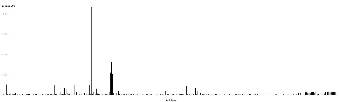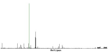 The curve in blue displays the predicted antigenicity i.e. the tendency for different regions of the protein to generate an immune response, with peak regions being predicted to be more antigenic.The curve shows average values based on a sliding window approach using an in-house propensity scale. (read more).