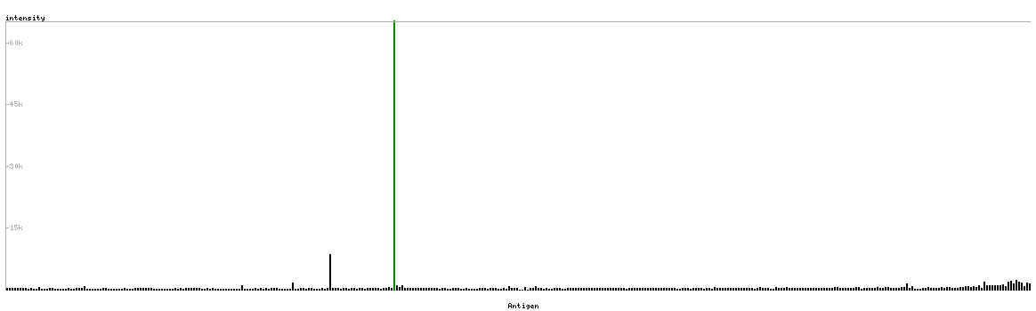The curve in blue displays the predicted antigenicity i.e. the tendency for different regions of the protein to generate an immune response, with peak regions being predicted to be more antigenic.The curve shows average values based on a sliding window approach using an in-house propensity scale. (read more).