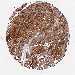 Most of the normal tissues displayed moderate to strong cytoplasmic positivity. Squamous epithelia, bile ducts, breast, skin, glial cells and lymphoid tissues were weakly stained or negative