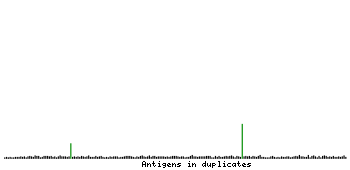 At the top of the view, the position of the antigen (identified by the corresponding HPA identifier) is shown as a green bar. A yellow triangle on the bar indicates a <100% sequence identity to the protein target.