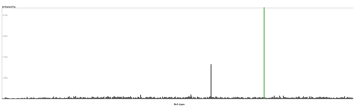 The curve in blue displays the predicted antigenicity i.e. the tendency for different regions of the protein to generate an immune response, with peak regions being predicted to be more antigenic.The curve shows average values based on a sliding window approach using an in-house propensity scale. (read more).