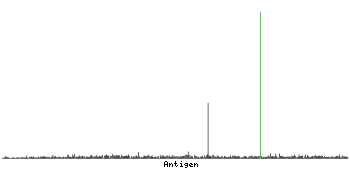 At the top of the view, the position of the antigen (identified by the corresponding HPA identifier) is shown as a green bar. A yellow triangle on the bar indicates a <100% sequence identity to the protein target.