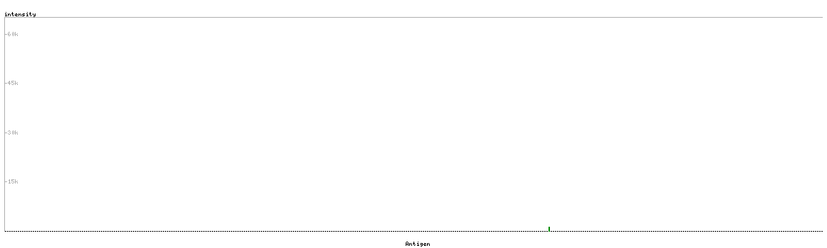 At the top of the view, the position of the antigen (identified by the corresponding HPA identifier) is shown as a green bar. A yellow triangle on the bar indicates a <100% sequence identity to the protein target.