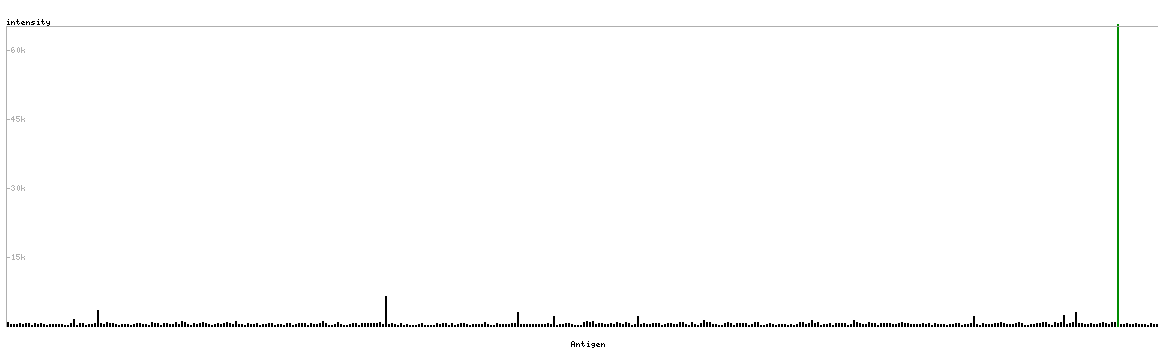 The curve in blue displays the predicted antigenicity i.e. the tendency for different regions of the protein to generate an immune response, with peak regions being predicted to be more antigenic.The curve shows average values based on a sliding window approach using an in-house propensity scale. (read more).