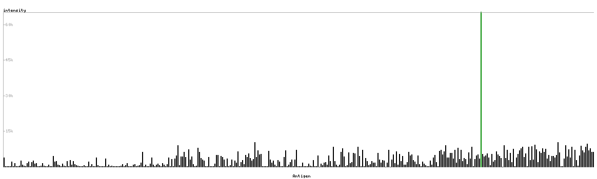 The curve in blue displays the predicted antigenicity i.e. the tendency for different regions of the protein to generate an immune response, with peak regions being predicted to be more antigenic.The curve shows average values based on a sliding window approach using an in-house propensity scale. (read more).