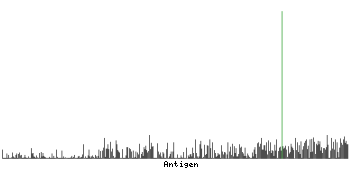 At the top of the view, the position of the antigen (identified by the corresponding HPA identifier) is shown as a green bar. A yellow triangle on the bar indicates a <100% sequence identity to the protein target.