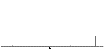 At the top of the view, the position of the antigen (identified by the corresponding HPA identifier) is shown as a green bar. A yellow triangle on the bar indicates a <100% sequence identity to the protein target.