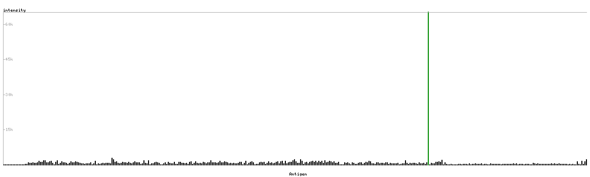 The curve in blue displays the predicted antigenicity i.e. the tendency for different regions of the protein to generate an immune response, with peak regions being predicted to be more antigenic.The curve shows average values based on a sliding window approach using an in-house propensity scale. (read more).