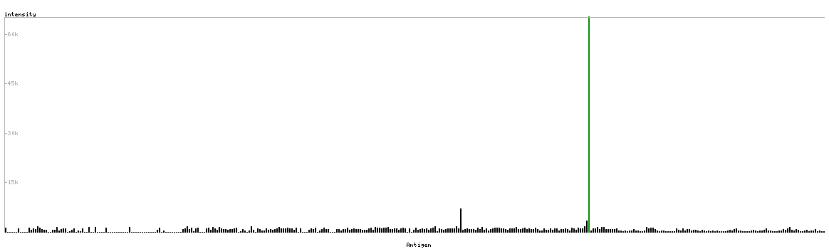 The curve in blue displays the predicted antigenicity i.e. the tendency for different regions of the protein to generate an immune response, with peak regions being predicted to be more antigenic.The curve shows average values based on a sliding window approach using an in-house propensity scale. (read more).