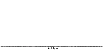At the top of the view, the position of the antigen (identified by the corresponding HPA identifier) is shown as a green bar. A yellow triangle on the bar indicates a <100% sequence identity to the protein target.