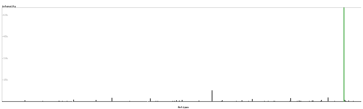 The curve in blue displays the predicted antigenicity i.e. the tendency for different regions of the protein to generate an immune response, with peak regions being predicted to be more antigenic.The curve shows average values based on a sliding window approach using an in-house propensity scale. (read more).